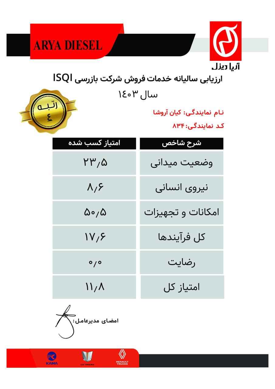 - آخرین نتیجه شاخص رضایت مشتریان از خدمات پس از فروش: 433